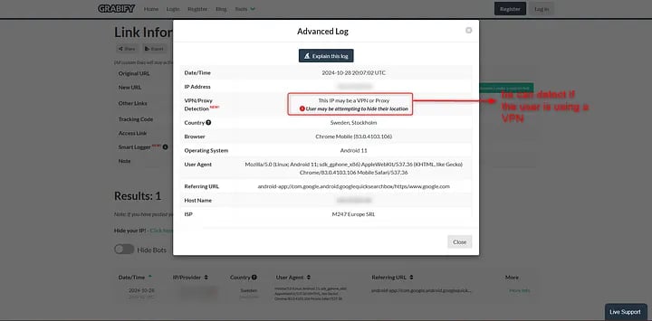 as you can see here it can detect that the user may be using a VPN [Cool Feature]