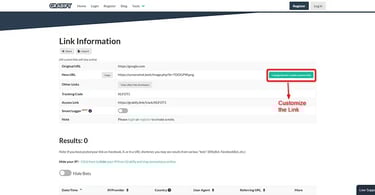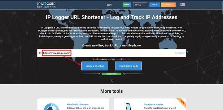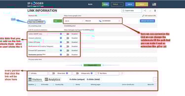 Here we start by entering the link or URL that we want to make short, or to track the IP and the user data