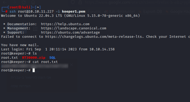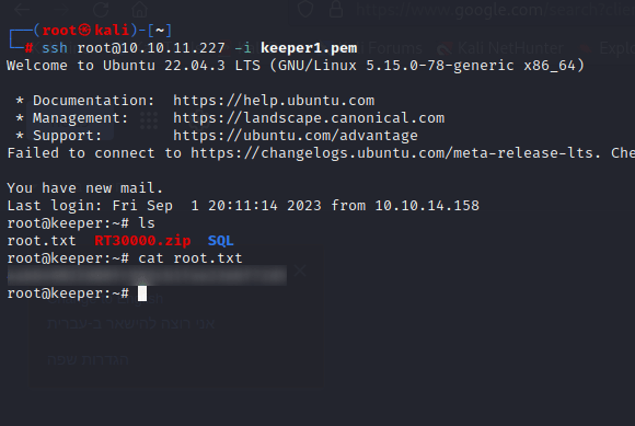 After this, I used the file to connect to the root user using SSH.