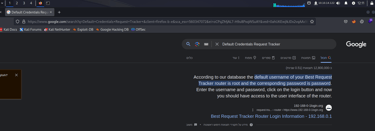 Search for Default Credentials for the login page.