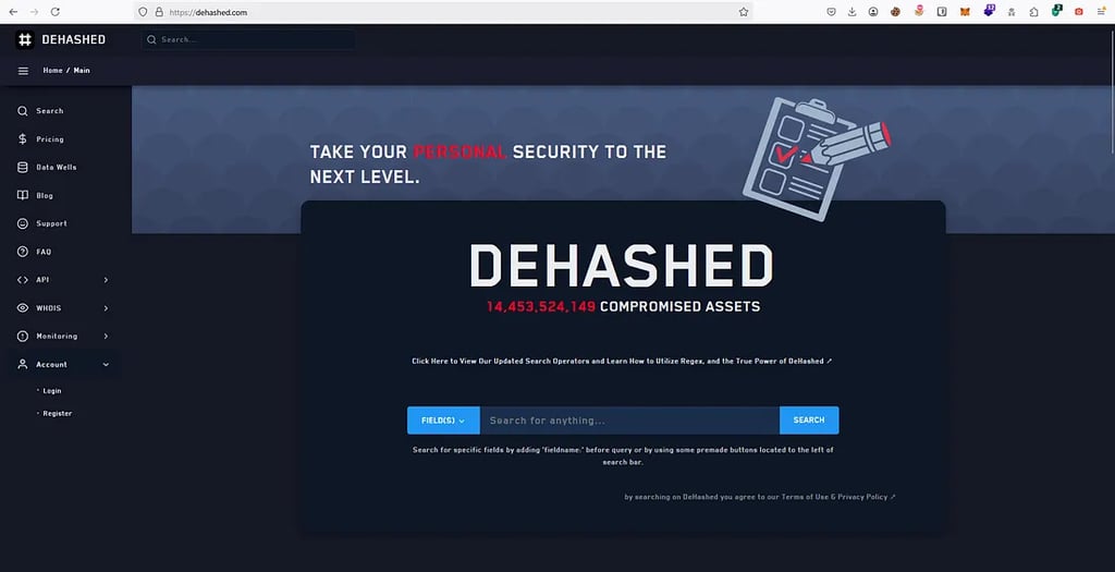 An advanced search engine designed for cybersecurity professionals, OSINT investigators, and ethical hackers to search for compromised credentials, leaked databases, and exposed personal information from data breaches. It provides access to a vast collection of breached data, allowing users to search by: